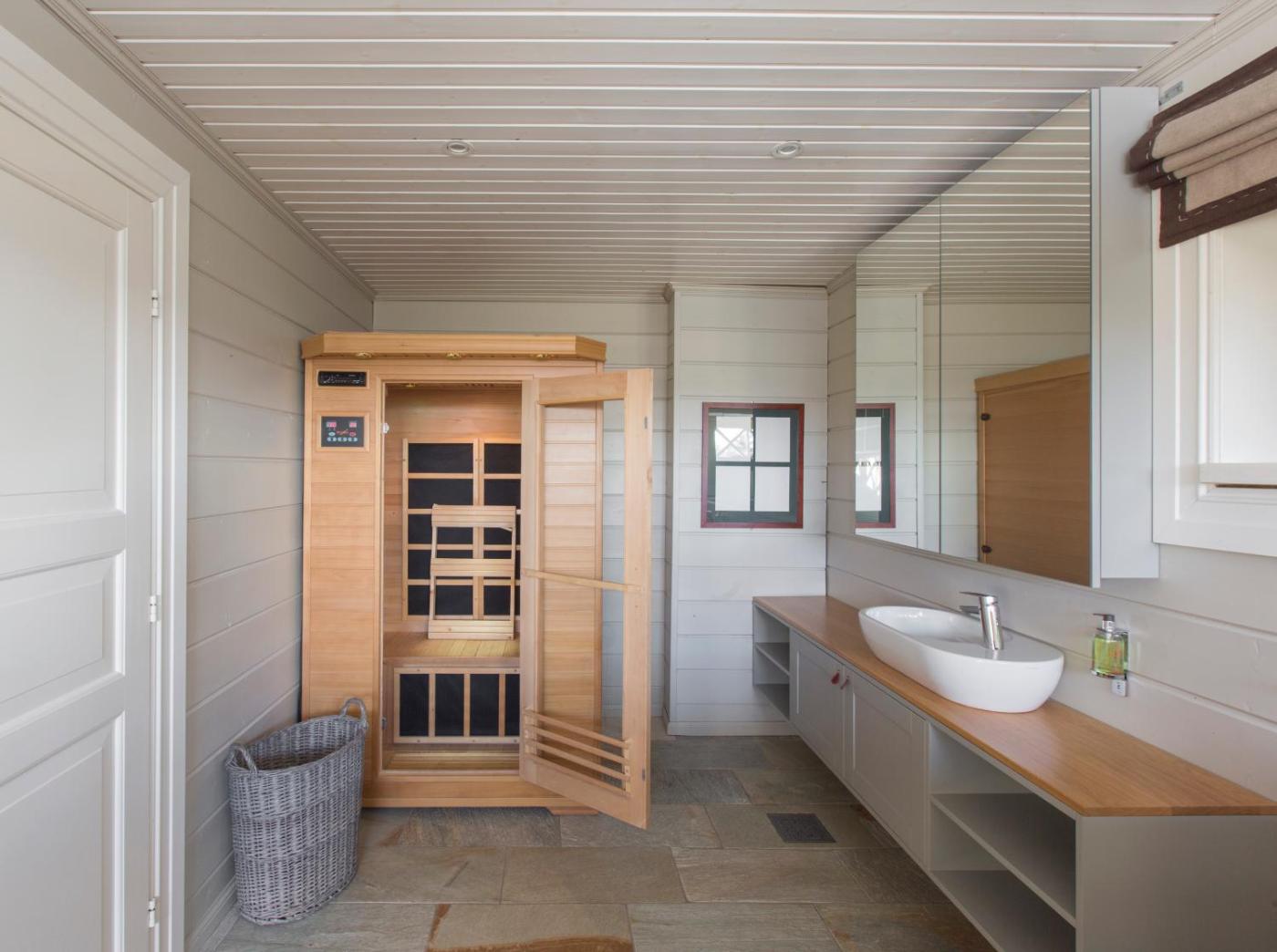 Three-Bedroom Apartment. This apartments standout features are the sauna and fireplace. Guests will find a stovetop, a refrigerator, a dishwasher and an oven in the kitchen. The apartment also includes a barbecue. The spacious apartment features a flat-screen TV with cable channels, a washing machine, a private entrance, a tea and coffee maker as well as mountain views. The unit has 3 beds.
