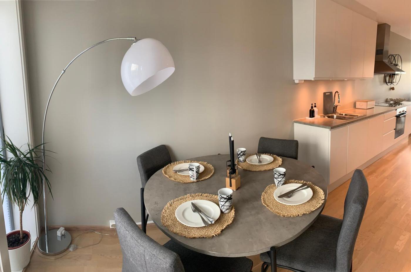 Featuring air-conditioned accommodation with a patio, Rom i nyere rekkehus nord i Haugesund is located in Haugesund. This property offers access to a terrace, free private parking and free WiFi.