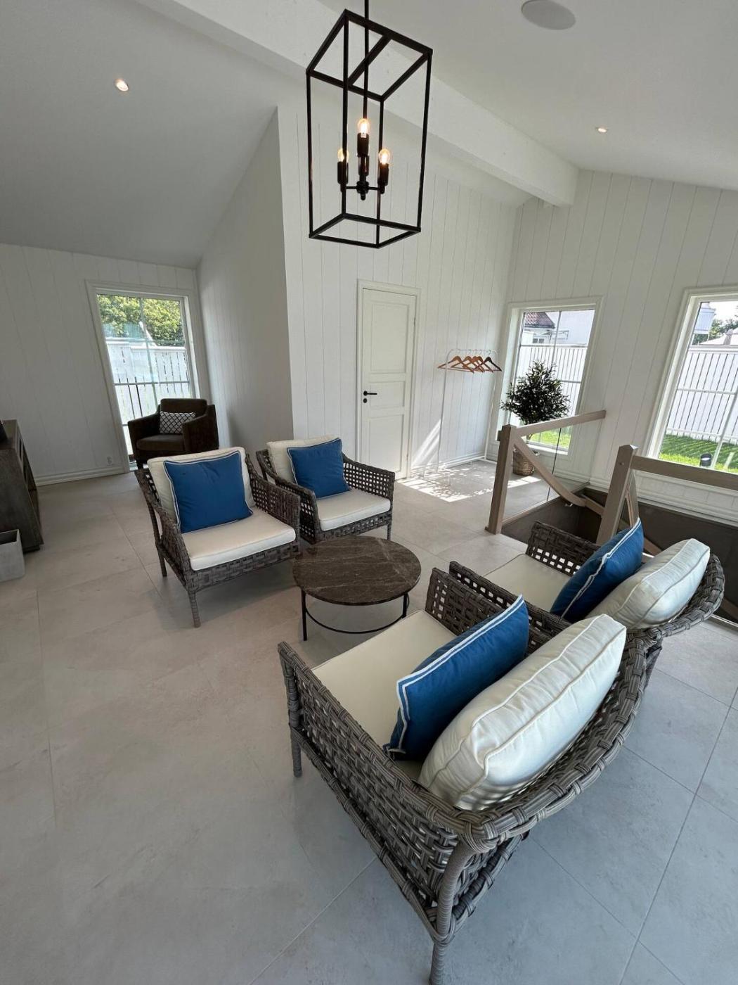 Boasting air-conditioned accommodation with a private pool, Sjøgata Hagehus is situated in Larvik. This beachfront property offers access to a terrace, free private parking and free WiFi. The holiday home also offers facilities for disabled guests.