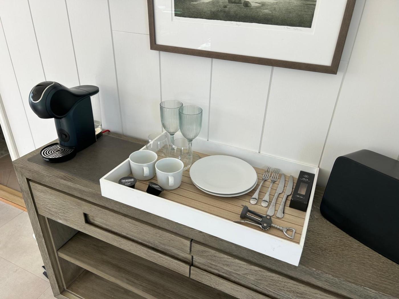 Shared stationery such as printed menus, magazines, pens, and paper removed