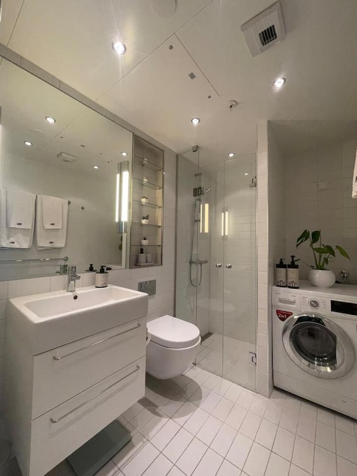 Well located in Oslo, Exclusive apartment, sea view to Oslo fjord, located on water in Oslo center provides express check-in and check-out and parking on-site. This beachfront property offers access to a balcony, table tennis, and free WiFi. The accommodation offers a lift, full-day security and organising tours for guests.