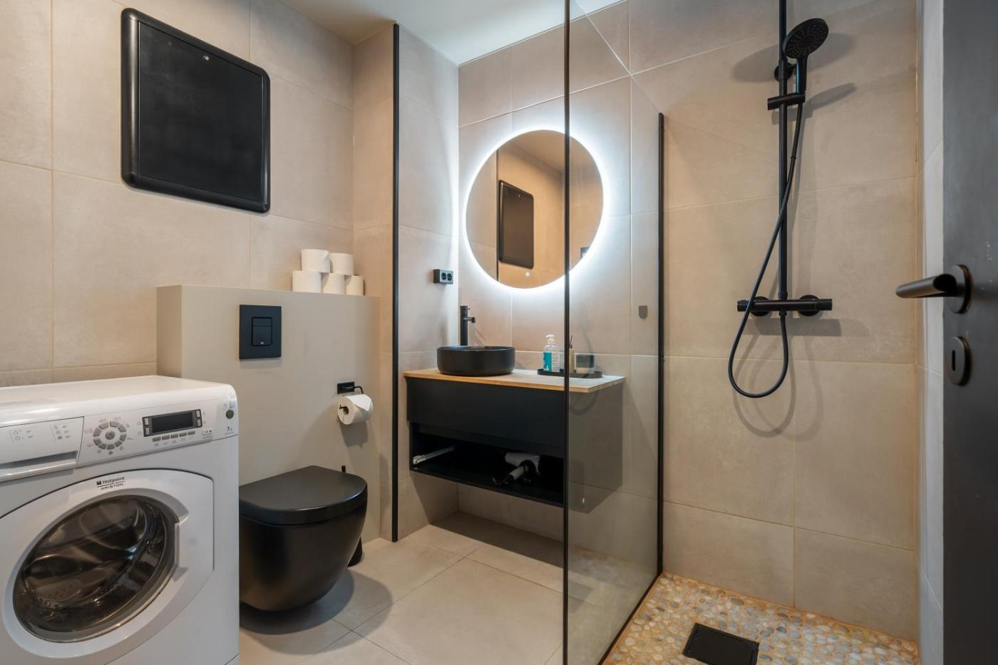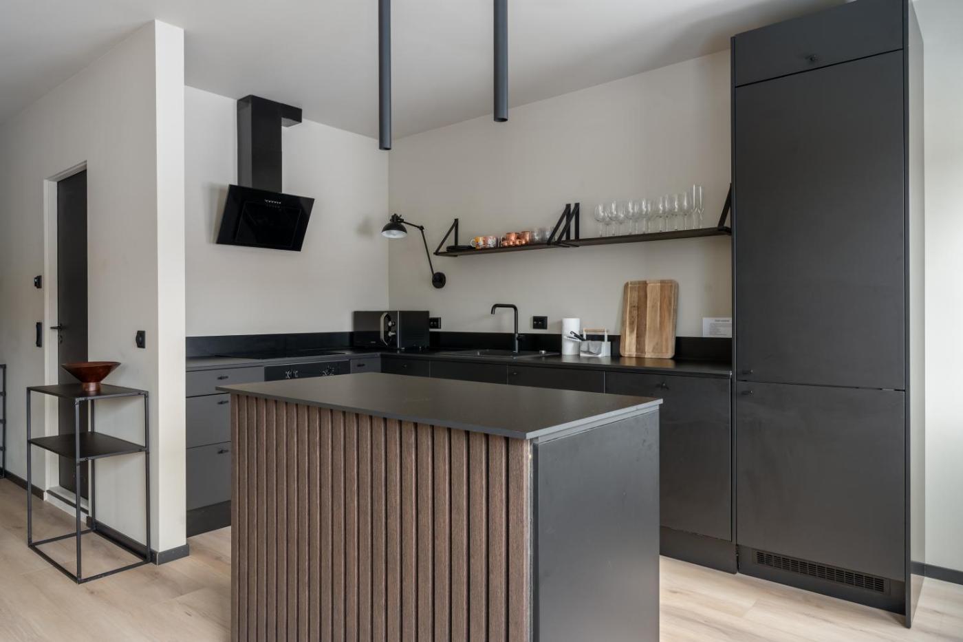 Two-Bedroom Apartment. Guests can make meals in the kitchen that has a stovetop, a refrigerator, a dishwasher and an oven. The apartment is furnished with a desk and a seating area and features a washing machine, a private entrance and garden views. The unit has 1 bed.