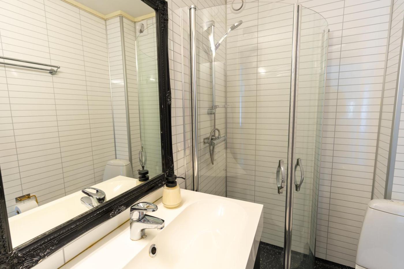 Two-Bedroom Deluxe Apartment. Featuring a private entrance, this air-conditioned apartment consists of a kitchen, 2 bedrooms and 1 bathroom with a shower and a hairdryer. Guests can make meals in the kitchen that is equipped with a stovetop, a refrigerator, a dishwasher and kitchenware. The apartment provides a washing machine, soundproof walls, a tea and coffee maker as well as a terrace with garden views. The unit offers 2 beds.