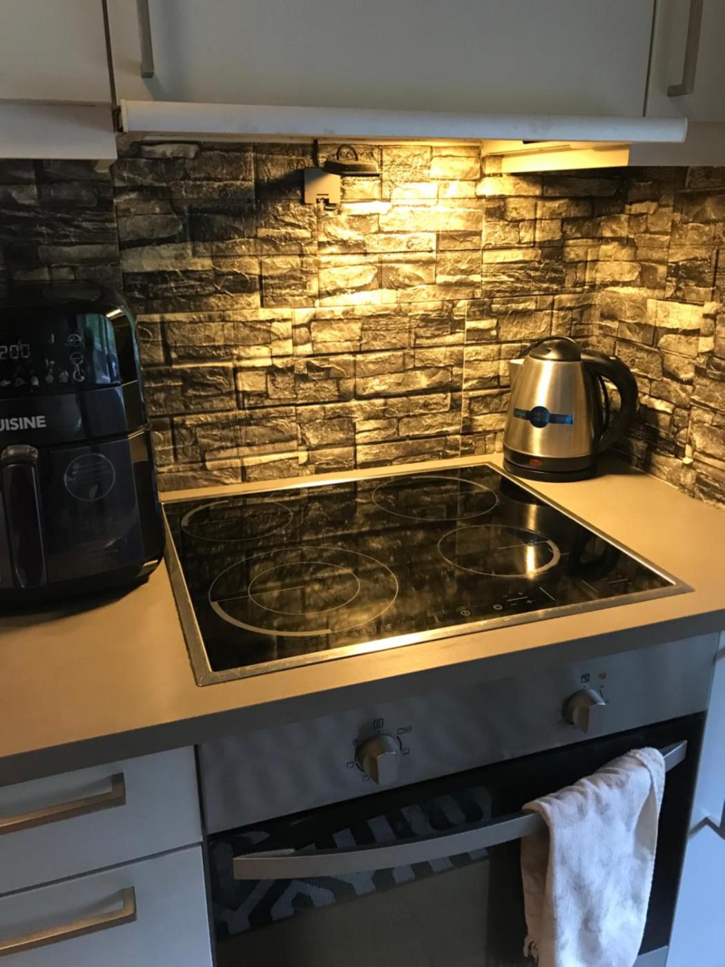 The apartment is composed of 1 bedroom, a fully equipped kitchen, and 1 bathroom. A flat-screen TV is featured.